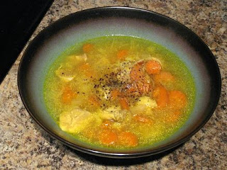 I haven't written anything in a couple of days, and even today's post will be short. I have a simple remedy for when misery strikes, be it cold or flu, being frozen to the bones after a long day out (skiing or otherwise) in wintry weather or even when we are sitting inside watching nasty weather rage outside and want some extra warmth and comfort. Chicken soup is that magic potion that makes a cold more bearable or thaws us out after skiing. I "indianized" a basic chicken soup just a bit, not only to add flavor, but also to tap into ayurvedic properties of certain spices, but it is still a very simple and fast dish to prepare.